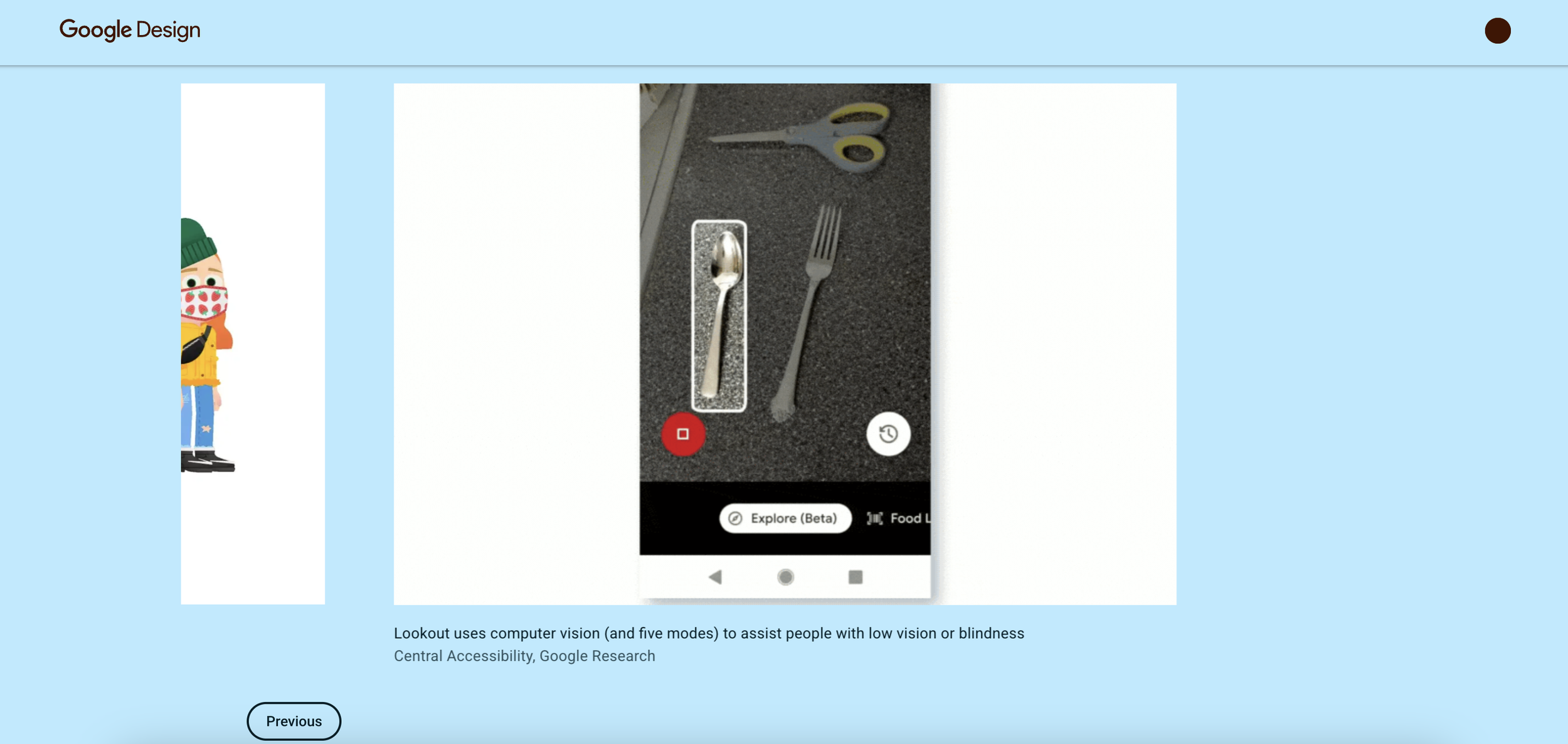 I was one of the award winners of the best designed apps at Google for my work on Lookout, as a solo designer.