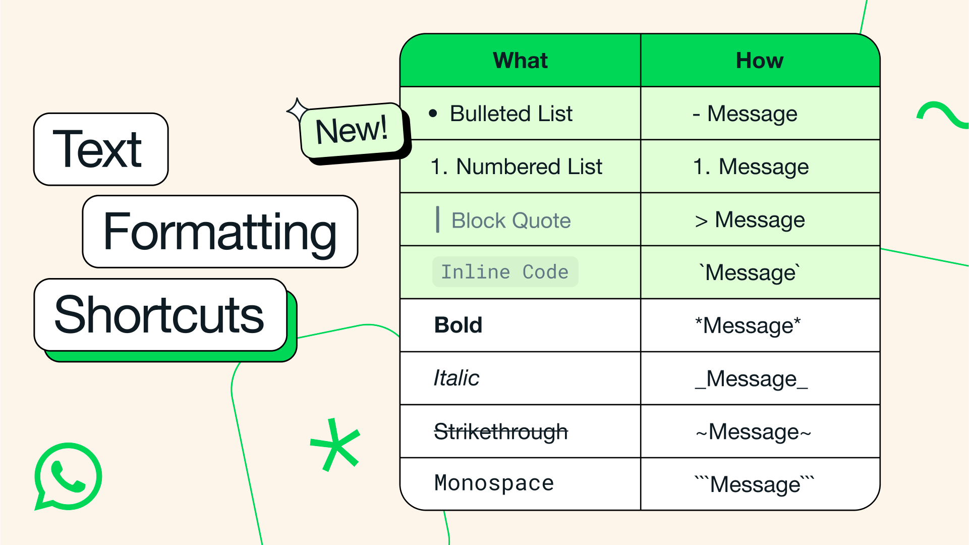 Example formatting options from the official WhatsApp channel